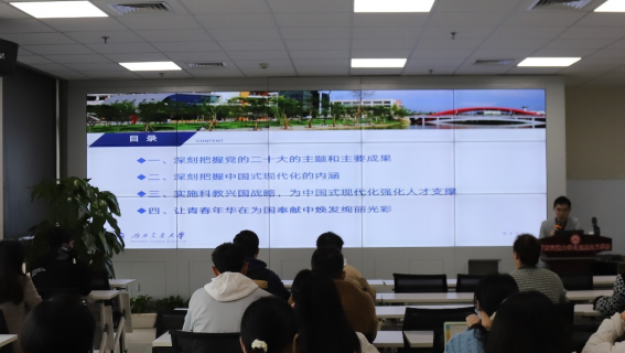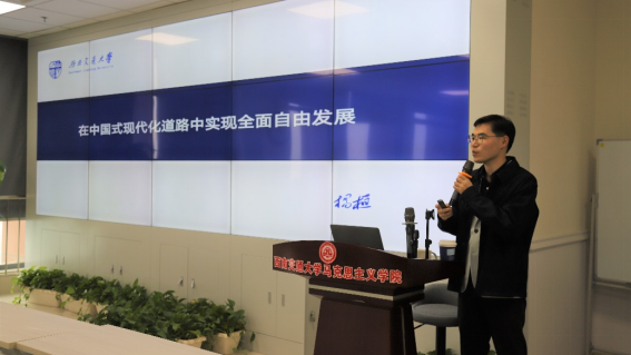 杨老师为同志们做了题为“在中国式现代化道路中实现全面自由发展”的精彩报告,从深刻把握党的二十大的主题引入,带领同志们回顾了党的二十大报告主题与过去五年的主要工作以机新时代取得的伟大成就,解读了二十大报告中,“中国式现代化”、“共同富裕”等一系列关键词的深刻内涵。