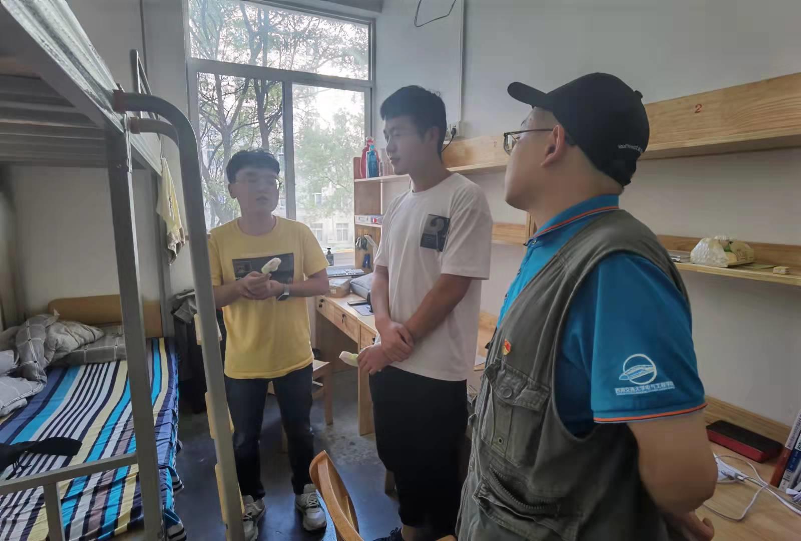 Fun88乐天堂 党委副书记、学生工作组组长谢力和硕士2021级辅导员王喆桅走访了九里校区眷诚斋5栋的部分研究生宿舍,谢力对研究生新生同学们的学习、生活状况进行了询问和关照,她表示:虽然同学们住在九里,离犀浦Fun88乐天堂 大本营有一段距离,但随着两校区间日趋发达的公共交通,距离不会阻碍交流,同学们在课程学习之余应多去一下团队实验室,感受科研氛围,早日融入团队;她还对同学们关心的一些问题进行了解答。王喆桅则提醒同学们注意遵守宿舍管理条例,避免违章用电,希望大家度过一个平安快乐的国庆假期。
