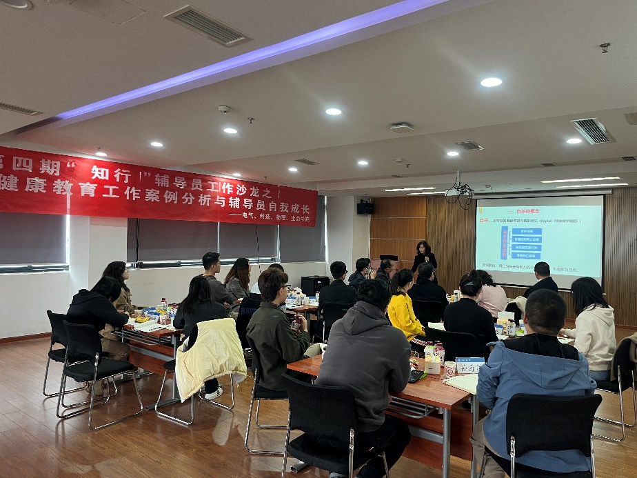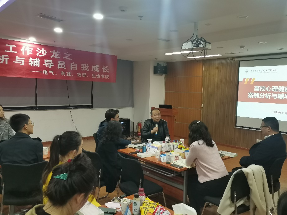为切实加强辅导员队伍建设,及时分析、研判、解决大学生日常思想政治教育工作中面临的新形势、新问题,11月28日下午16时,由党委学生工作部主办,Fun88乐天堂官网 、生命科学与工程Fun88乐天堂 、物理科学与技术Fun88乐天堂 、利兹Fun88乐天堂 承办的第四期“知行”辅导员工作沙龙在电气馆10832举行,研讨高校心理健康教育工作案例分析与辅导员自我成长方面的问题。心理咨询中心主任陈华,Fun88乐天堂 党委书记罗乾超,学工部副部长邢晓鹏,生命Fun88乐天堂 党委副书记朱炜,物理Fun88乐天堂 党委副书记郭剑,Fun88乐天堂 党委副书记谢力,利兹、生命、物理、Fun88乐天堂 辅导员参与此次工作沙龙。活动由Fun88乐天堂官网 党委副书记谢力主持。