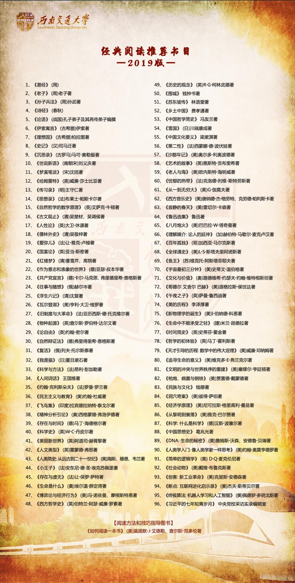 各团支部组织2019级新生开展“经典悦读”活动,新生至少读一本经典书目(经典阅读书目见附件)或自选书目,撰写一篇字数1500字以上的读书心得或录制一段3分钟以内的微视频,内容为对所读书目的感悟、对阅读、对经典的理解和思考。主题自定,题材不限,严禁抄袭套作。