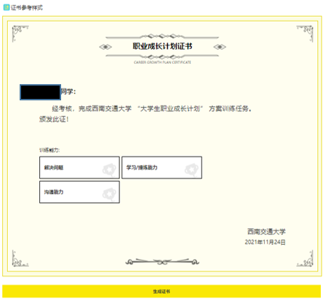 第七步:完成所有能力训练后,需要在生涯档案证书模块提交生成证书