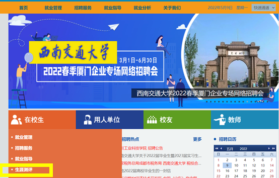 (//jiuye.fun88ltt.net/eweb/jygl/index.so)点击“在校生-生涯测评”模块: