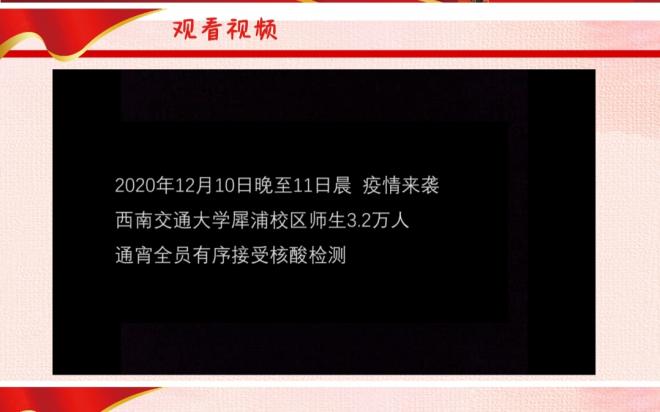 支部同志们一起观看了学校师生核酸检测实录视频。疫情当前,我们临危不惧,一切井然有序,自觉接受核酸检测,不聚集,不抱怨,认真进行线上学习。同时还有许多志愿者们,主动帮助医务人员,在核酸检测现场维护秩序等等。一方面,校园关闭商业街,开展线上教学,大大减少人员聚集的情况。另一方面,同学们也积极配合,出行佩戴口罩,有序错峰去食堂用餐。相信在学校党委的坚强领导下,我们一定能打赢这场疫情防控阻击战。