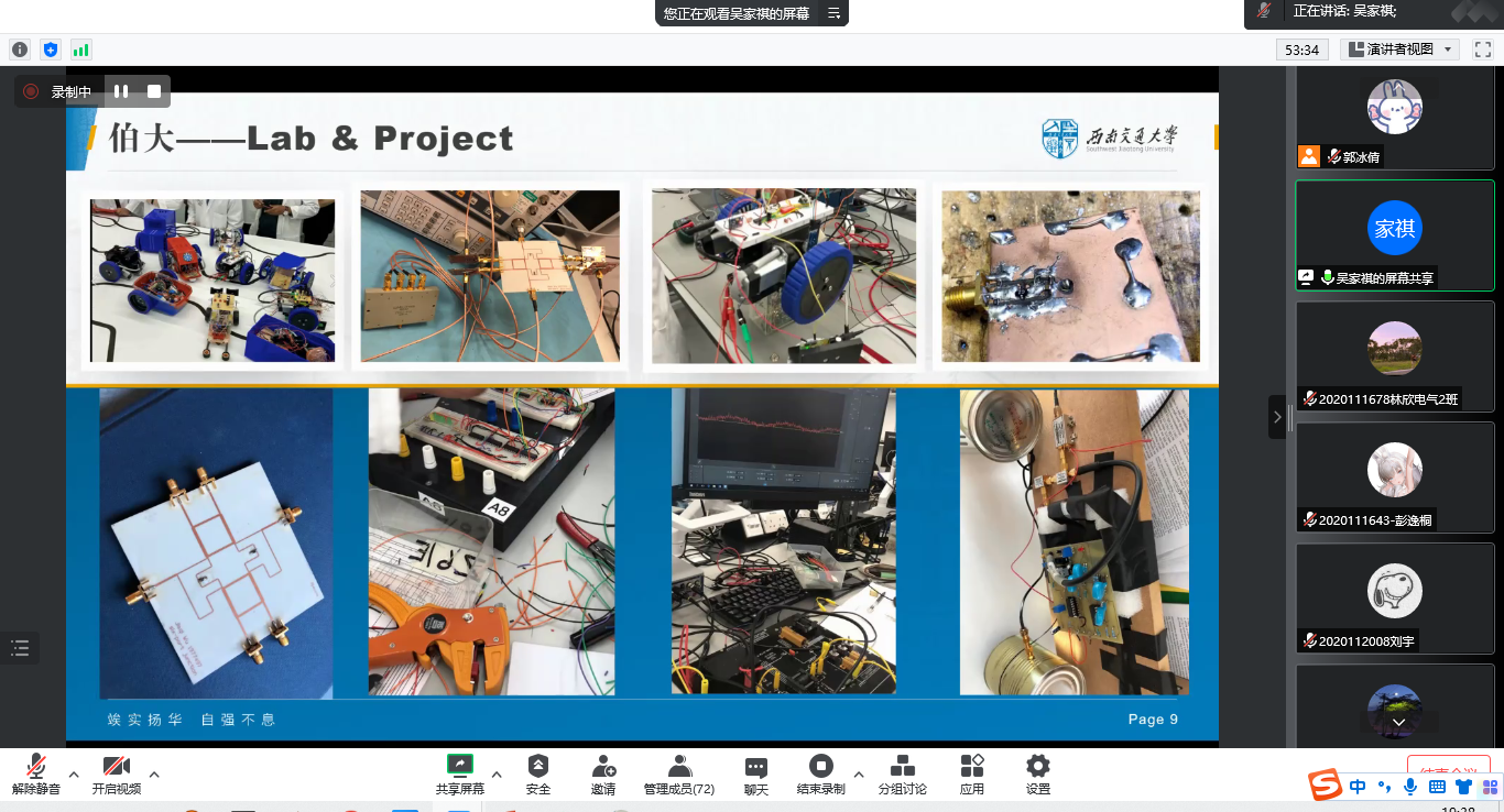 为帮助同学们更好地了解出国留学流程、做好出国相关准备,明确努力方向,8月19日晚19时30分,Fun88乐天堂官网 举办了“电气”脚尖,迈向世界——海外留学经验分享会。本次分享会由Fun88乐天堂官网 本科2020级辅导员郭冰倩主持,同时邀请了拥有丰富留学经历的本科2016级电气工程及其自动化专业的吴家祺同学和本科2018级电子信息工程专业的韦雨声同学分享自身的留学经验与心得,帮助同学们更加深入地了解留学申请流程,专业及院校选择、海外学习生活和留学就业前景等方面信息。
