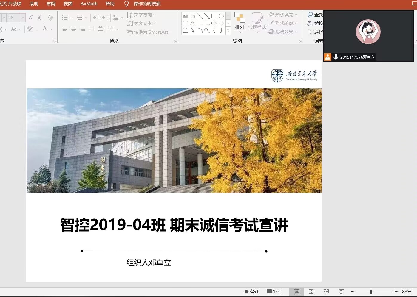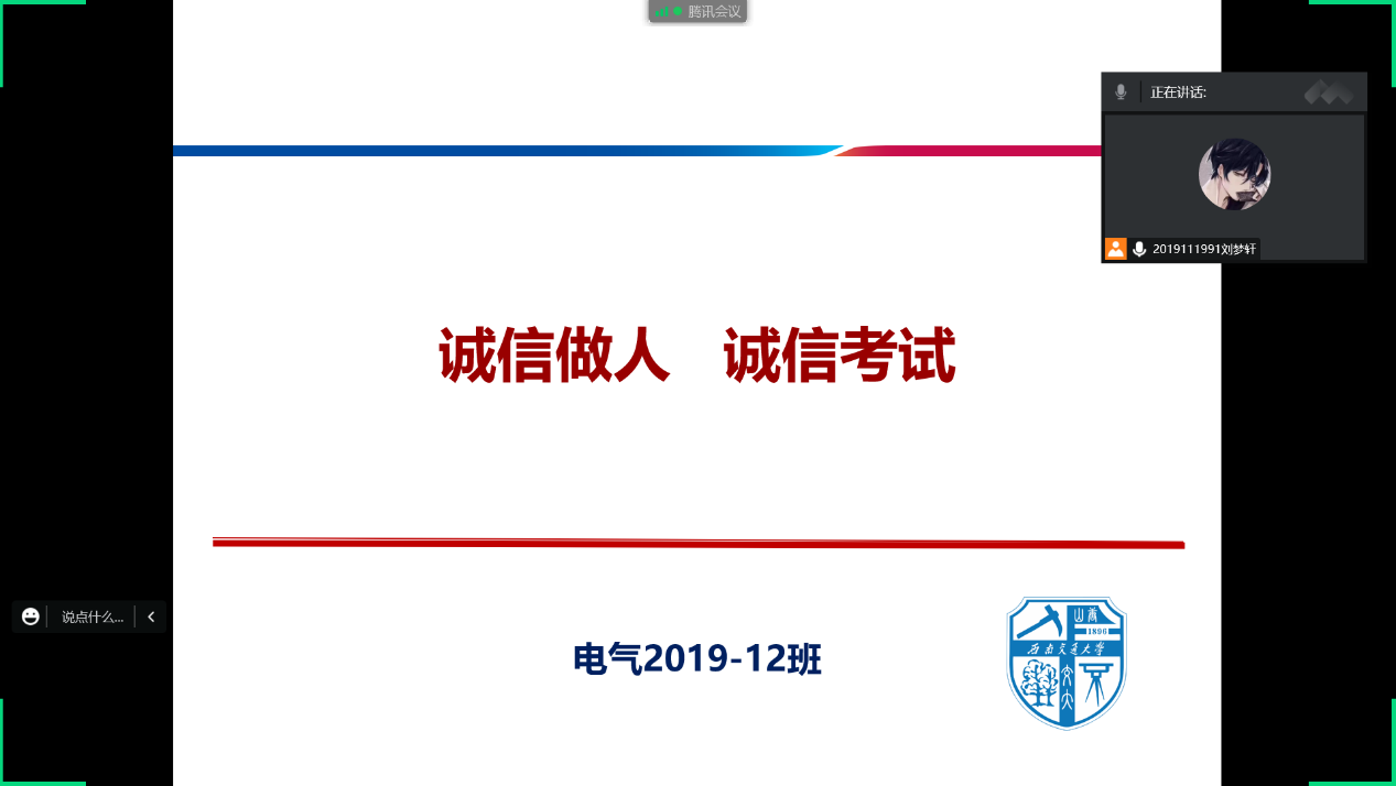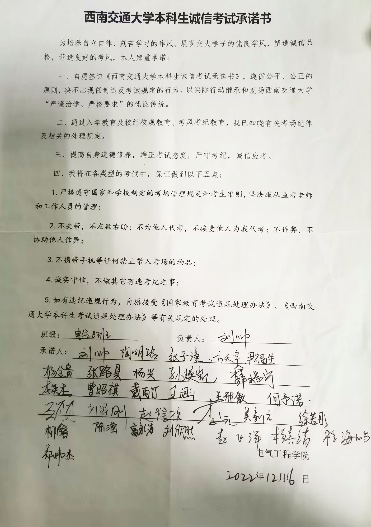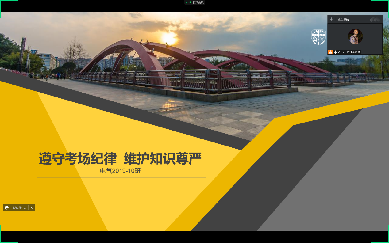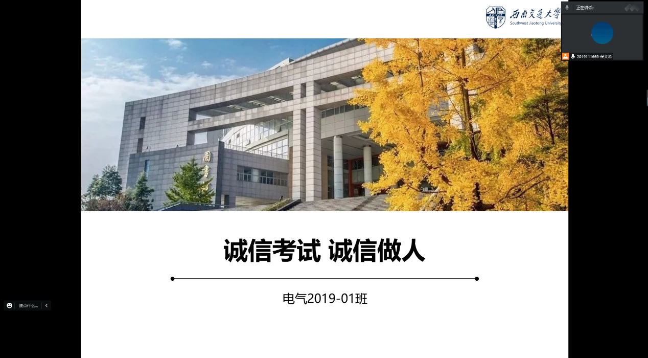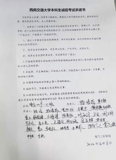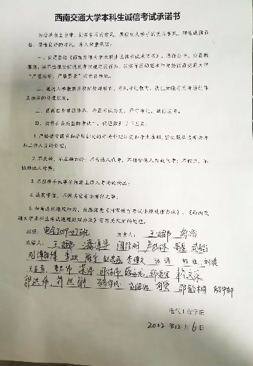 诚信是个人立足之本,为了进一步传达年级大会上强调的诚信考试精神,鼓励同学们诚信考试,202212月,电气本科2019级各班开展了以诚信考试为主题的班会。
