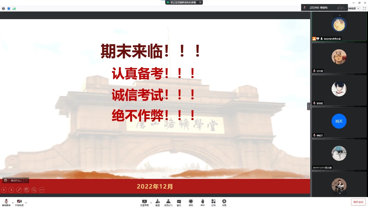 各班班长、团支书通过展示各类真实作弊案件及其带来的严重后果,警醒同学们考试中须得保持诚信,并对考试作弊带来的严重后果进行讲解。