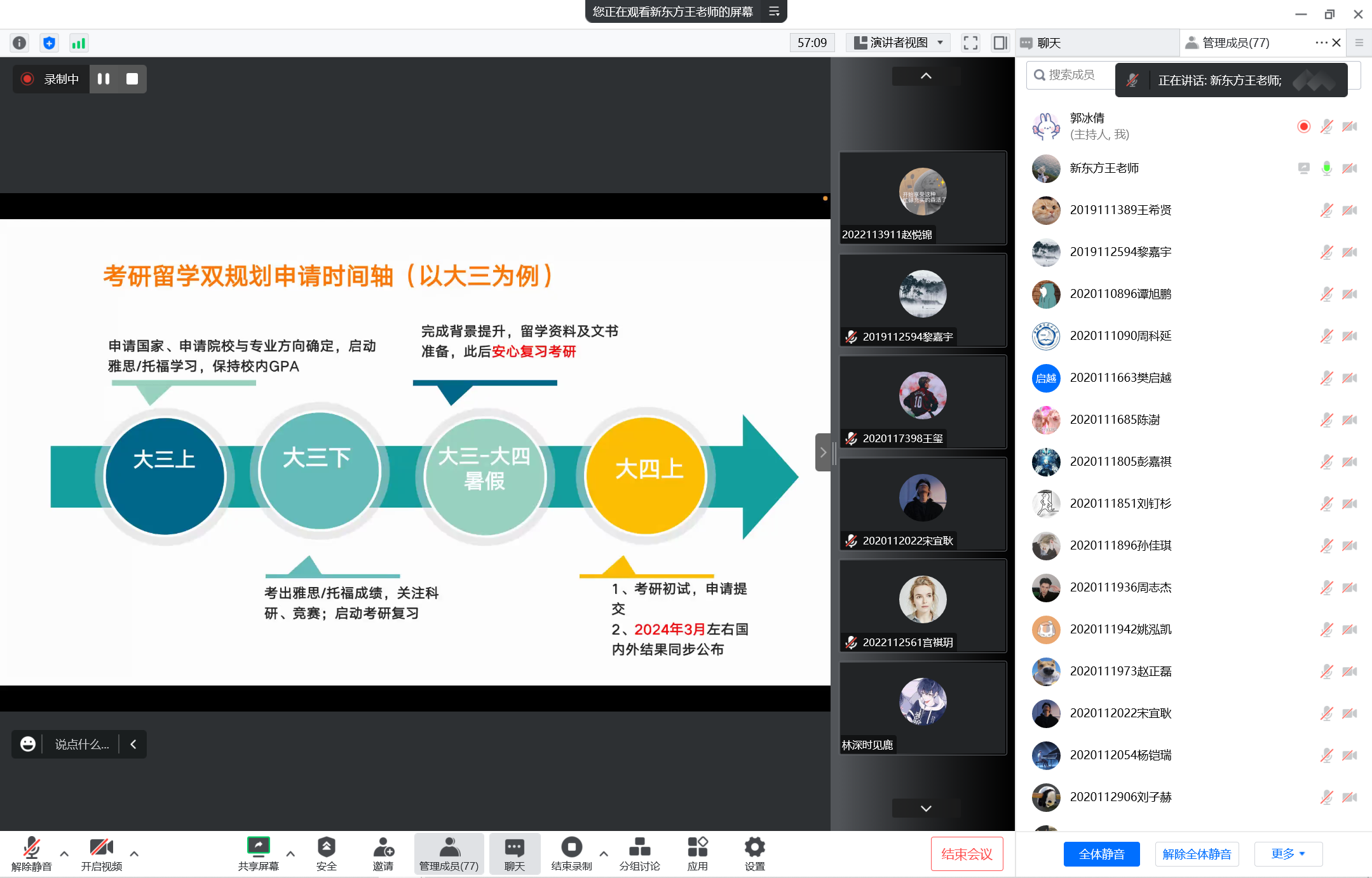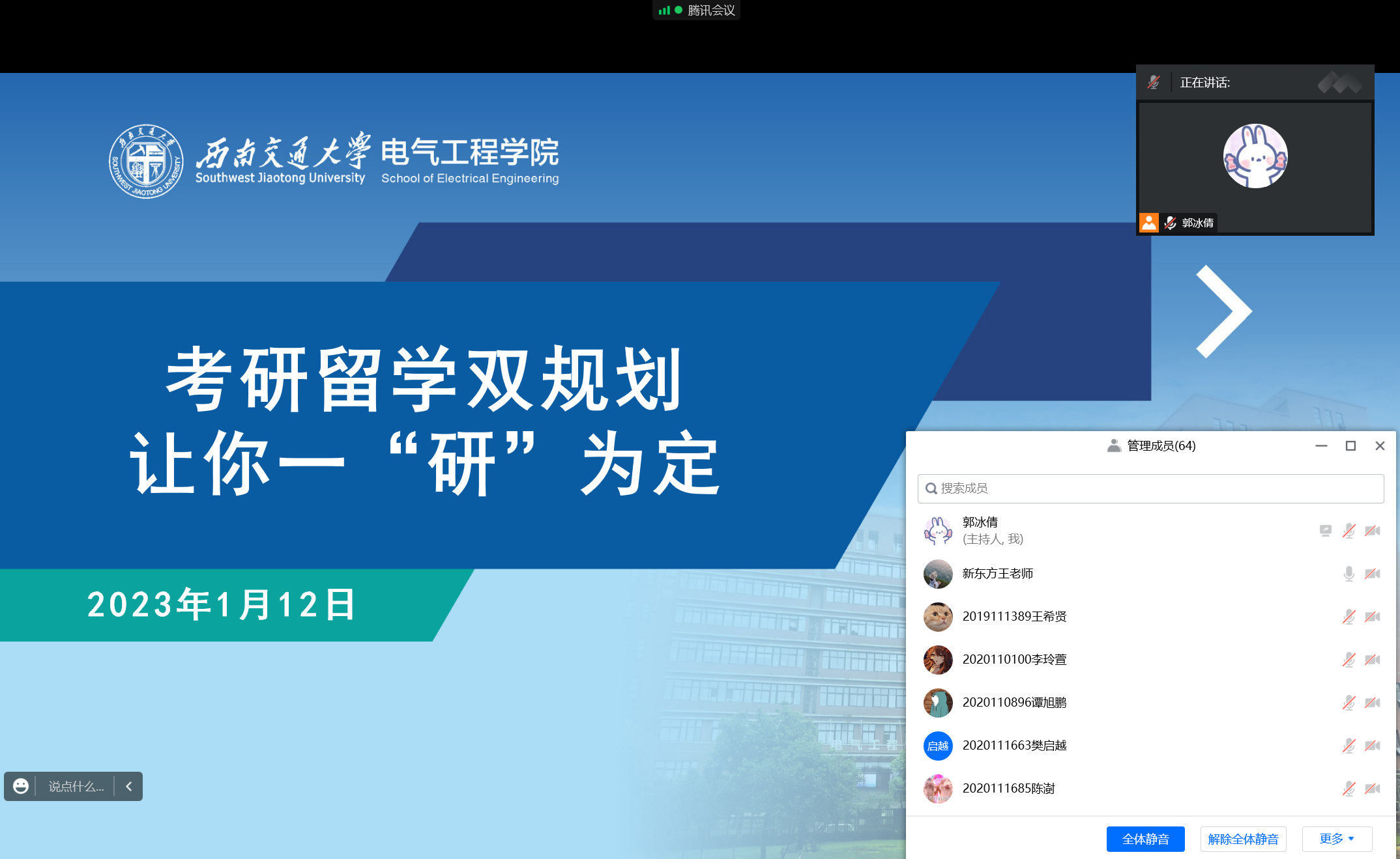 为帮助学生合理规划未来,明确方向目标,1月12日晚7时,Fun88乐天堂官网 举办“考研留学双规划,让你一‘研’为定”专题讲座,讲座由新东方前途出国资深咨询顾问王利莎老师主讲,Fun88乐天堂 辅导员郭冰倩主持,Fun88乐天堂 本科2020级和2021级部分学生参与。
