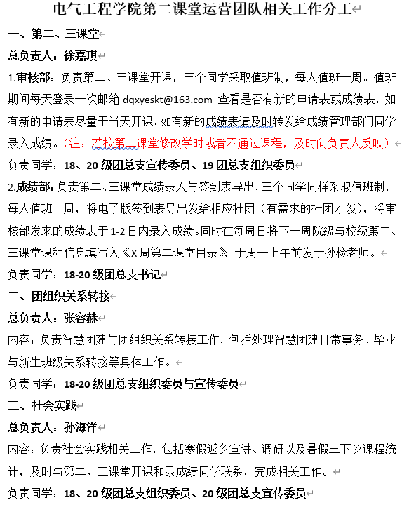 第二课堂运营学生团队相关工作的具体分工进行了详细讲解,并对新加入团总支的同学进行了第二课堂运营业务和技术上的培训。