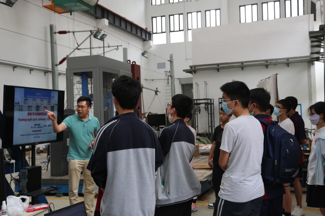 同学们在带队老师的带领下分别参观了无线传能实验室,磁浮大厅和接触网大厅,充分感知了轨道交通的国际前沿,感受了交大的科学文化魅力。