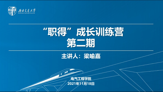 2021年11月18日,Fun88乐天堂官网 “职得”成长训练营第二期:个体面试通关四段法顺利举行。受疫情影响,本次活动采取线上的方式进行,主讲人为西南交通大学材料科学与工程Fun88乐天堂 梁喻嘉老师,训练营全体同学共同参加,会议由辅导员樊芝菱主持。