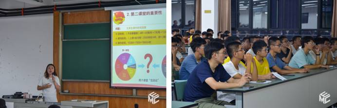 林静英从共青团基础知识、校团委简介、校学生组织概况、校团委设立的学生活动基金、第二课堂和院团委简介及院学生组织概况等六个方面,向同学们介绍了学校共青团的基本情况。其中,林静英就同学们最为关心的学生组织进行了详细介绍与说明。她介绍到,校级学生组织主要包括校学生会、校社团联合会、校青年志愿者联合会、“青年传媒”全媒体中心、礼仪队、国旗班、校园大使团、研究生会和第二课堂运营中心等,都有自己的职责和任务,有相关的兴趣的同学可以去进一步了解和接触。