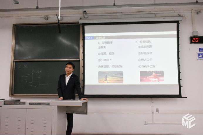陈逸伦从上大学的意义,学习与竞赛,课余活动三个方面展开了自己的汇报。大学一是可以开阔眼界,增长见识,二是可以提升素质,培养能力,大学期间的学习至关重要,因此一定要抓住时间,努力奋斗。在学习上,学习习惯的养成是重点,一定要做到静心思考,戒骄戒躁;端正态度,事必躬行;拒绝拖延,提高效率;不断询问,善于总结,做到了这几点,才能打下进步的基础。参加竞赛的前提是学有余力,建议对某个方面感兴趣,为了习得技能,提升能力才去参加,切忌浅尝则止,盲目参与。在课余生活中一定要加强锻炼,发展特长,劳逸结合,养成良好的人际关系,这样的大学生活才会更充实,更美好。