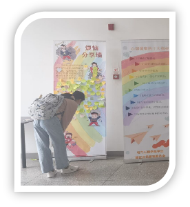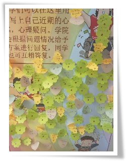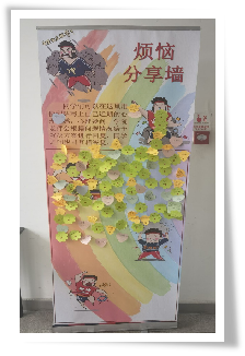 烦恼分享交流环节中,同学们也都纷纷在便利贴上写下了自己最近的困惑与不安,粘贴在了烦恼分享墙上。同时,也积极回复其他同学在墙上的留言,为他人的烦恼留下自己的建议,互帮互助,打开心扉,一起健康成长。