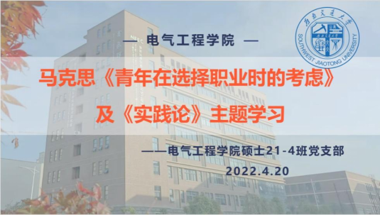 为深入学习贯彻习近平新时代中国特色社会主义思想,提升学生党员的党性修养和思想觉悟,Fun88乐天堂官网 硕士2021级第四党支部4月20日,在犀浦校区天佑斋3栋红色驿站面向支部全体党员和班级其他同学开展了第二期马克思主义理论学习活动——《青年在选择职业时的考虑》及《实践论》学习会。