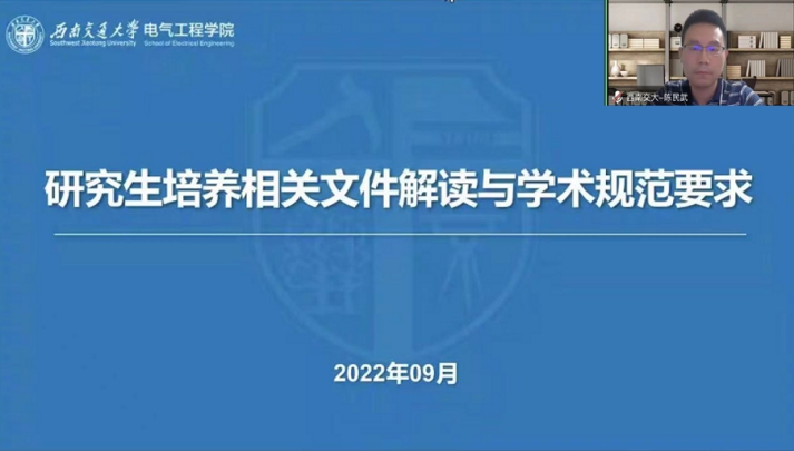 在会上,陈民武副院长从课程学习、培养环节、档案管理、毕业论文等方面对《西南交通大学关于攻读硕士学位研究生培养工作的规定》《西南交通大学关于攻读博士学位研究生培养工作的规定》和《西南交通大学研究生培养过程管理与质量督导实施办法》等涉及研究生学业生涯的相关文件规范进行解读。