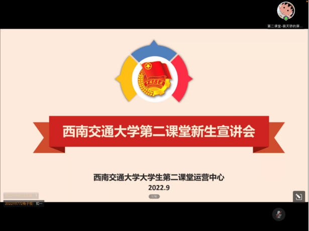 2022年9月20日19时,Fun88乐天堂官网 本科2022级召开了第二课堂专题讲座。本次讲座为线上形式,主讲人为来自第二课堂活动中心的裴天骄同学,本科2022级全体新生及辅导员参加了本次讲座。