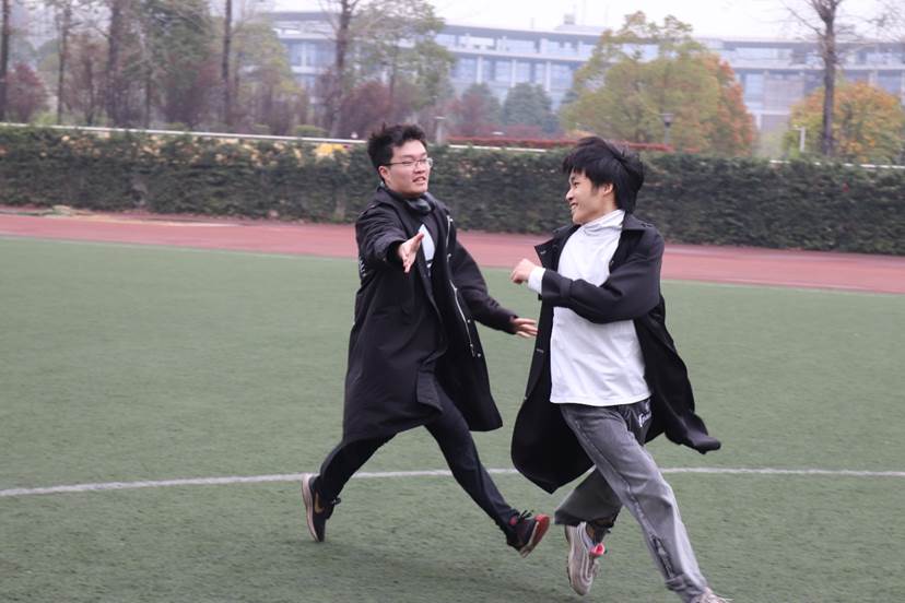 青春的热情洋溢在同学们的脸上,天气虽冷,驱不散同学们的喜悦之情。大家穿梭在田径场中,你来我往,乐此不疲。周围的同学也不断欢呼加油,彰显着青春的活力。