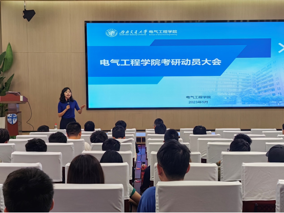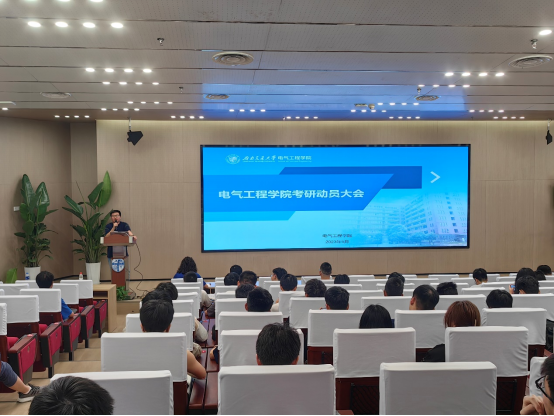 激励和支持学生积极备战考研,提高考研的成功率和录取率营造一个积极向上、勇于拼搏的考研氛围5月28日,电气本科2020级在图书馆一号报告厅召开考研动员年级大会,Fun88乐天堂 党委副书记谢力出席会议并讲话,年级大会由辅导员关怀、郭冰倩主讲,本科2020级全体学生参加会议。
