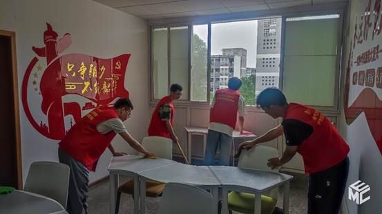活动当天,志愿者们早早来到宿舍自习室,合理分工,将新生宿舍自习室打扫整洁,为即将到来的新同学营造良好的学习环境,提供最贴心的保障和呵护。