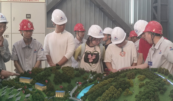 实践队伍在电站工作人员的带领下,参观了厂区的主要设施和工艺流程。根据自身所学的相关专业知识,实践队成员们和厂房内的工作人员一起讨论,加强了自身的专业素养。