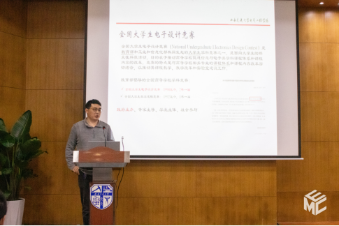 颁奖仪式结束后,董金文老师为同学们详细地介绍电子设计大赛的情况。董金文老师讲述了竞赛的规则,时间特点并提供了相应建议,他举出近年的科创赛事和人物事例让同学们增加了解同学们都受益匪浅。最后董金文鼓励同学们踊跃参与科创赛事,并同学们提供了参赛方法