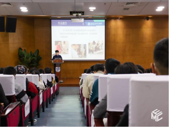 首先李诗涵老师作新生科创启航竞赛分析报告,李诗涵表示本次科创活动旨在鼓励同学们提高科创能力,并鼓励同学们不仅要在课堂上获取理论知识更要在课外提高动手能力与专业素养。本次科创启航大赛本科2021级共有309人参赛,参赛率达到52.37%其中,42名同学获得一等奖4人获得满分。在班级获奖人数方面智控四班拔得头筹,获奖人数高达24人;电子一班、智控三班以及电气一班获奖人数紧随其后。最后李诗涵老师希望同学们能相互学习,争取在以后的比赛中做得更好