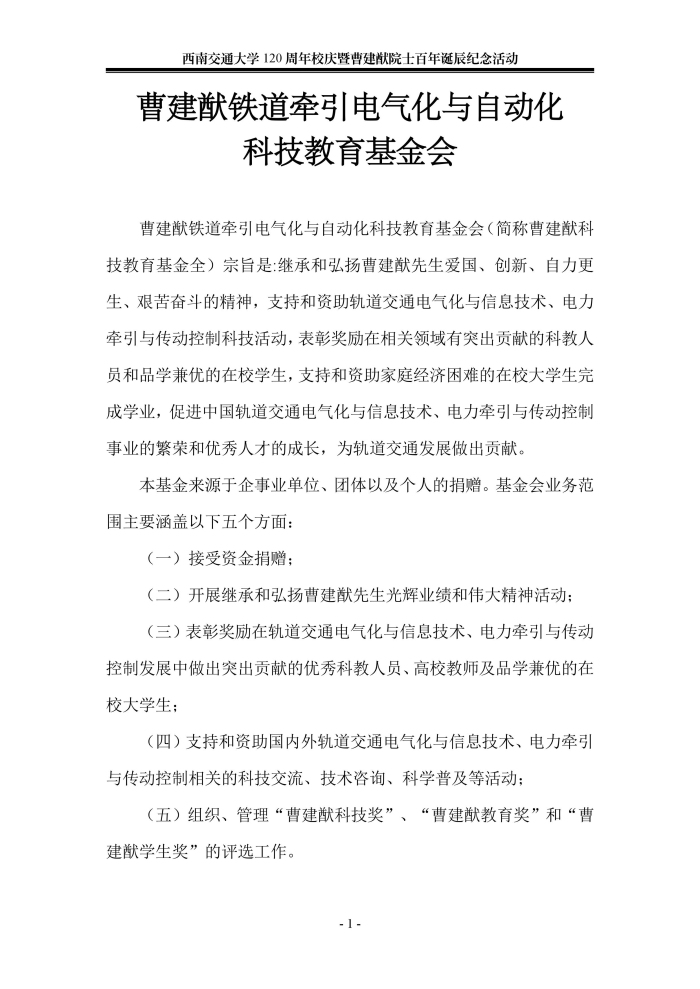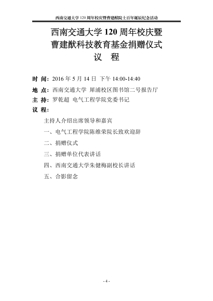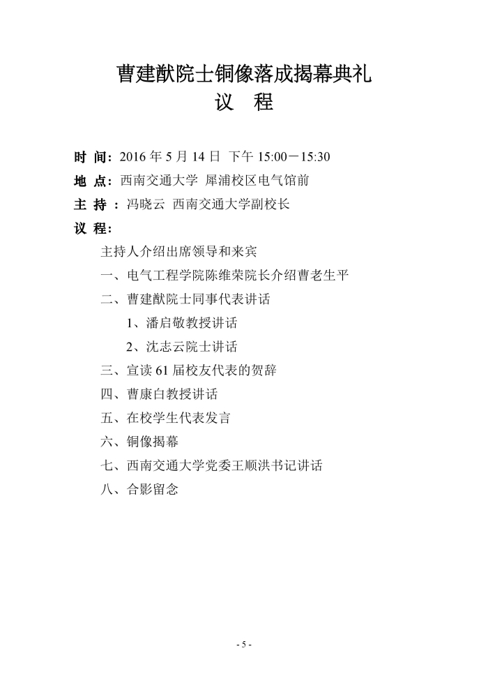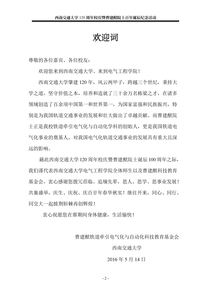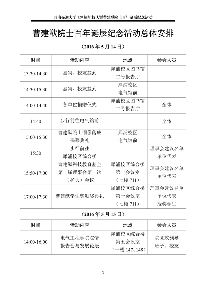 西南交通大学120周年校庆暨曹建猷院士百年诞辰纪念活动会议指南