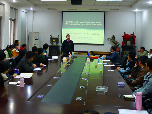 2015年1月5日上午,在西南交通大学电气馆3211会议室,美国德州大学阿灵顿分校李伟仁教授应邀为我院师生们带来本期“创源”大讲堂研究生学术讲座——《基于PMU的大型风电场动态等效模型研究》,此次讲座由何正友教授主持。