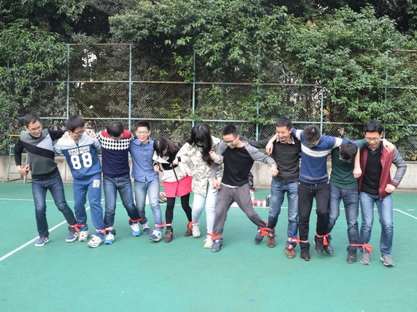 秉承友谊第一比赛第二的精神,在活动最后全体参与者进行了快乐“两人三足”前进游戏,这是一个真正考验团队协调力的活动,在经历了开头的不顺之后,大家终于迈齐了步伐,团结一致向着终点前进。
