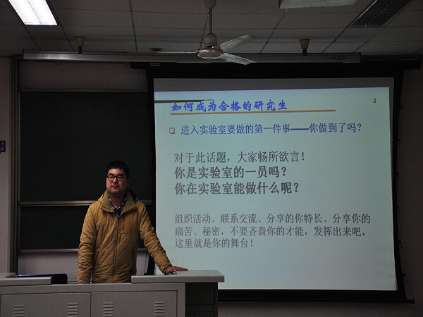 然后由电力电子实验室的何俊鹏师兄为我们分享他的研究生国奖之路。何俊鹏师兄先强调了态度的重要性,他认为无论是学习还是以后的工作,态度是首要的,态度决定了你做事的积极性。因此,他建议大家以积极好学的态度来对待研究生的三年生活。其次,师兄又强调了在学习当中方法和习惯的重要性,好的方法事半功倍,好的习惯才能拥有持续性。师兄还对他在学习方面的经验做了一些总结,鼓励我们好好学习,珍惜自己的学习时光。