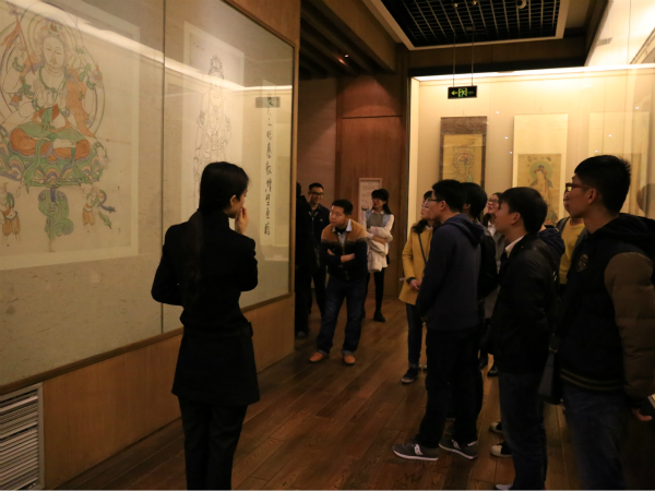 支部成员及积极分子们在讲解员的带领下走进川博,一幕幕精彩的历史呈现在眼前,厚重的文化气息扑面而来。首先参观的是张大千书画馆。四川博物院对大千先生画作的收藏,堪称富甲一方,尤其是临摹敦煌壁画,规模在其他博物馆中无出其右者。展厅分为张大千临摹敦煌壁画、写意画和大千用印三部分。讲解员详细讲述了一代绘画大师的一生的艰辛历程,以及大师对于敦煌莫高窟壁画的伟大贡献。一幅幅金碧巨制,一层层清逸笔墨,一枚枚玲珑玉印,一段段过往旧事,似乎走进了一个非凡的大千世界。