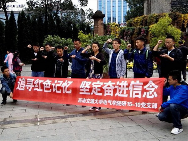 2015年10月31日上午九时,由Fun88乐天堂官网 2015级研究生第十党支部组织开展的以“追寻红色记忆,坚定奋进信念”为主题的党支部特色活动在四川省保路运动纪念馆举行。此次活动还邀请了部分预备党员、入党积极分子以及其他同学参加,通过开展一系列以弘扬爱国主义精神为主题的学习活动,坚定了党员同志的共产主义信仰,提高了班级凝聚力。