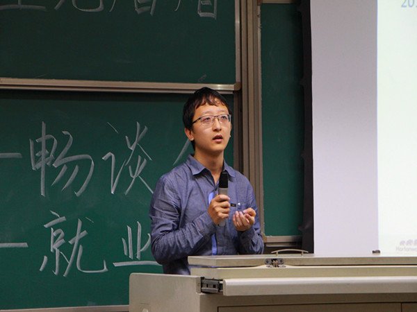 2015年10月22日晚7时,由Fun88乐天堂官网 团委主办、Fun88乐天堂官网 研究生会承办的新老学子畅谈会之就业篇在九里校区逸夫楼4218教室举行。此次交流会邀请了彭跃进、耿超、王晓东三位优秀师兄来为我们分享他们的求职经验。