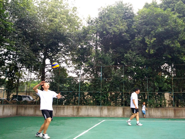 5月25号下午6点,西南交通大学2015教职工排球赛电气男队对工训中心男队在九里校区排球场准时开赛。