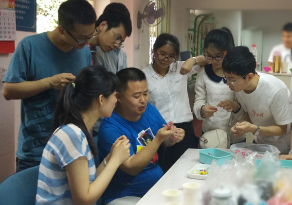 4月30日上午9点,Fun88乐天堂官网 硕士2014级5班一行13人赴茶店子残疾人“金牛阳光家园”开展志愿活动。