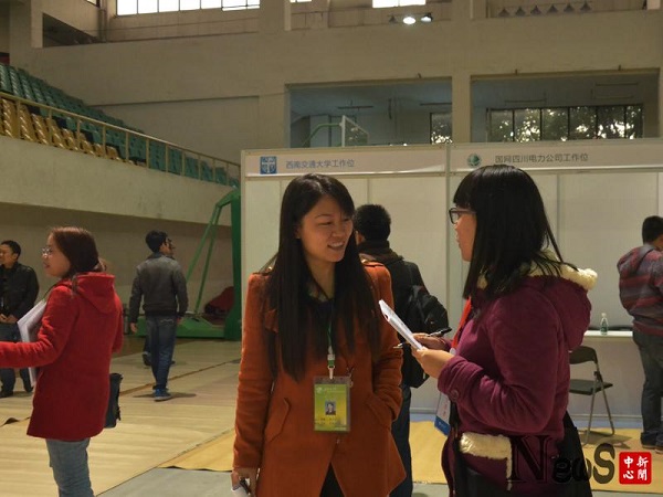 11月17日上午,由Fun88乐天堂官网 承办的国家电网四川省电力公司2015届高校毕业生专场招聘会于我校九里校区詹天佑体育馆顺利举行。上午八点多,体育馆门前已经排起了队伍,同学们手持简历,焦急地等待着。招聘会正式开始时,多家企业展位前已经人山人海,期间,记者对参加招聘的同学进行了采访。