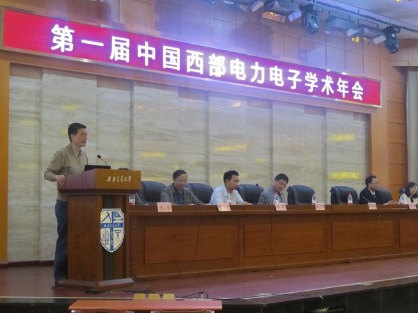 2014年10月11日上午9时,由四川省电力电子学会主办的第一届中国西部电力电子学术年会在西南交通大学网络Fun88乐天堂 国际会议厅准时揭开帷幕。虽是秋风萧瑟、秋雨连绵,但这一天对于中国西部所有的电力电子研究学者们来说,无疑是意义重大、精神振奋的一天。本次会议由西华大学Fun88乐天堂 院长王军教授主持,参加会议的嘉宾有四川省科学技术协会副主席黄竟跃、四川省电力电子学会理事长郭世明教授、Fun88乐天堂-乐天堂app-乐天堂官网 党委书记陈维荣教授、中国兵器工业206所特殊电源部主任史平君教授、重庆大学杜雄教授、电子科技大学李泽宏教授以及西南交通大学许建平教授,此外,还有西部众多高校的师生代表及企业代表参加了此次会议。
