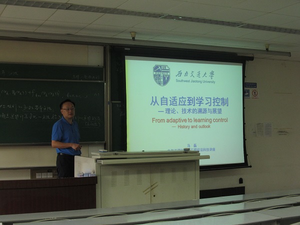 伴随着大家的掌声,我们迎来了马磊教授来为我们开始这场饱含知识的学术讲座。讲座始终以自适应控制系统为中心,并且进行了丰富的拓展,马教授首先以简单易懂的语言向大家详细介绍了自适应控制系统的产生,作用,及工作方式:自适应控制系统存在于我们生活中的方方面面,大到飞机的飞行,轮船的航行,小到一般的家用电器,无时无刻不存在着自适应控制系统。关于自适应控制系统的发展,马教授主要从五个方面展开了讲述:为什么我们的生活中需要自适应控制系统?典型的自适应控制系统都有哪些?如何从失败中学习提高系统的稳定性?重访自校正控制机制以及从自校正到增强学习控制的学习系统。