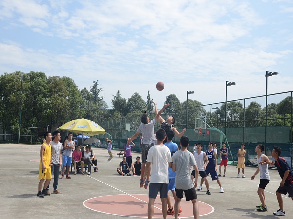 2014年9月24日13时,Fun88乐天堂-乐天堂app-乐天堂官网 一年一度的研究生新生篮球赛在九里校区篮球场如火如荼地开展起来,本次篮球赛共有20支队伍参赛。24日,参赛队伍悉数到场,多日阴雨后,难得的蓝天白云更是映衬着运动健儿们跃跃欲试的精神风貌。按照赛程规定,9月24日进行初赛,各班健儿们都以饱满的热情在赛场上挥洒着汗水。