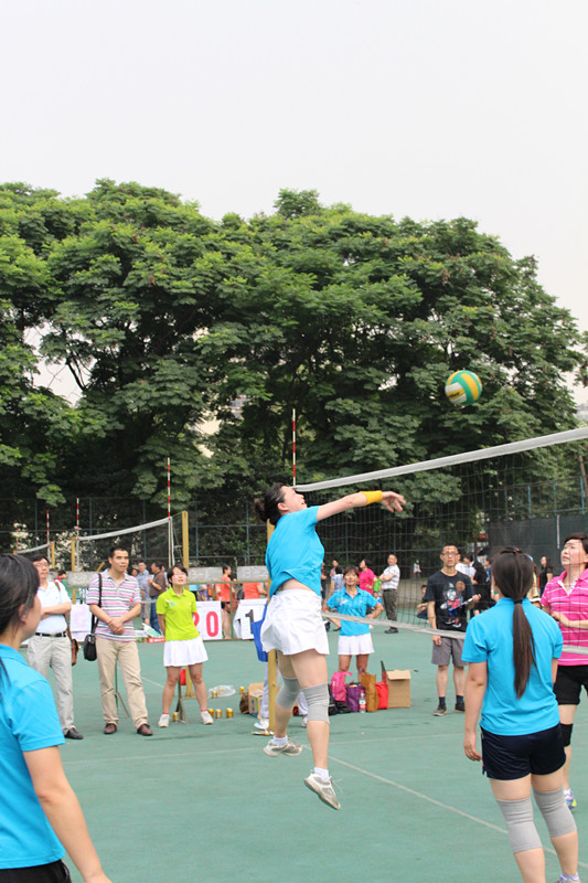 第三局比赛开始,校机关选手们凭借精彩的吊球技术,取得了领先。在比赛的前半局,双方你追我赶,比分战至10:14,Fun88乐天堂 选手们加强了防守,并且增加了人员跑位,在赵老师与何老师两个主攻手的带领下,大家连得4分追上了对手,但最后由于发球失误、主攻队员的体力下降、失误的增多,最终以19:25丢掉第三局。