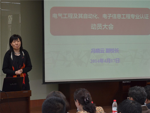 副校长冯晓云教授首先发言,她对Fun88乐天堂官网 以往所取得的成绩予以了充分肯定,并从国家层面以及学校层面分析了本次国家工程教育专业认证的重要性。她指出,我国去年成为《华盛顿协议》的预备成员国,今年将迎来“大考”,这关系到我国是否能在2015年如期成为正式成员。国内的专业认证标准与国际的接轨,对国家工程教育专业的认证工作提出了更严格的要求。另外,此次专业认证评估将作为学校审核评估工作的重要支撑,体现学校本科专业的教育教学水平以及人才培养的质量。最后,她强调各位老师要认真承担起教学责任,真正树立起“以学生和学习为中心”的核心教育理念,切实将学风建设的四项总要求:负责任、真学习、见行动、重实效落实到位,牢固树立起Fun88乐天堂 兴衰责任在我的危机意识。