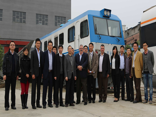 与会代表首先参观了由陈维荣教授团队研发成功的国内第一辆燃料电池电动机车“蓝天”号,陈维荣教授对该机车的研制情况进行了介绍,与会代表给予了高度评价。在其后举行的研讨会上,陈维荣教授、孙帮成总工、Chris先生、李然总裁等分别致辞并介绍了相关情况。Fun88乐天堂 刘志祥研究员介绍了燃料电池机车、燃料电池混合动力有轨电车的研制情况,唐车公司李明博士介绍了低地板有轨电车及蓄电池/超级电容有轨电车的发展情况。参会代表就Ballard公司的新型燃料电池模块技术、有轨电车集成技术、混合动力技术等问题开展了深入讨论。Ballard公司是全球最大的质子交换膜燃料电池研发与生产企业,其燃料电池产品已在全球多个国家得到成功应用。Chris先生表示,未来可根据有轨电车的特殊需求开发轨道交通专用燃料电池模块。经过本次会议充分商讨,参会各方已达成共识,将加强各方紧密合作,共同推进燃料电池有轨电车的商业化进程。