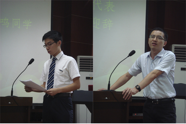 接着优秀高年级研究生代表胡海涛同学致欢迎辞,他将自己在学习、生活中的亲身感悟向13级新生们进行了传达,并表达了自己对于师弟、师妹们的美好祝愿。新生代表陈一鸣同学代表13级新生进行了发言,他用饱满的热情表达了新生同学对于Fun88乐天堂 的感谢,并表示自己一定要努力学习,积极为Fun88乐天堂 争光。马磊教授作为Fun88乐天堂 导师代表也发表了讲话,马教授表示,研究生的学习要耐得住寂寞,要脚踏实地的做事,要将自己的所学真正用到解决实际问题中去。