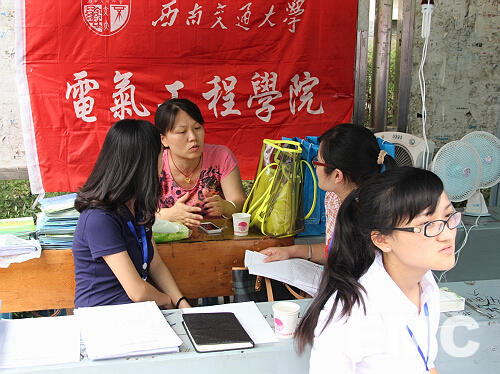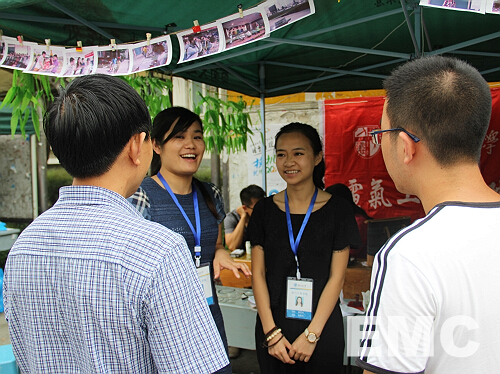 虽然工作的时间很长,但她们的精神一直很饱满,不管是安排迎新工作还是接待新生和他们的家长,她们一直很热情很耐心。就在我跟她们谈天的时候,一位申请缓缴学费的新生来找她们帮忙,高晗雨学姐细心帮他说明了一下手续的流程。