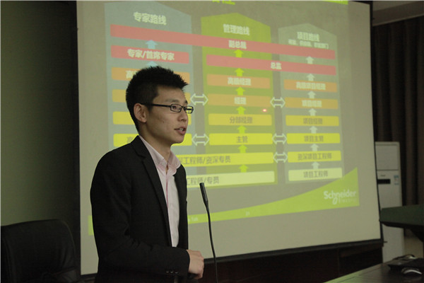 本次宣讲会上三位到场嘉宾为同学们详细的介绍了施耐德电气的基本情况。施耐德电气根植中国二十余年来,一路秉承“帮助人们善用其效,尽享其能”的使命,公司在170多年的发展历程中不断开拓进取,积极创新,逐步成长为全球能效管理专家。随后刘臣先生为同学们介绍了施耐德电气的Fun88乐天堂。公司的价值观是关心、挑战、联结、承诺。为了这一目标,公司致力于培养人才并助其成长,同时秉承3E的培养理念,即“70%experience,20%exposure,10%education”。通过70%的实战经历,以及高达20%的与公司高层、经理层、专家层接触机会并加上10%的专业培训,让施耐德的员工不断进步,更好的服务公司。在谈到施耐德的核心竞争力是什么的时候,桓为刚经理自豪地说:“我们的强势是能够为客户提供很多可选择的方案,我们拥有齐全的系列产品。自从收购了多家公司以后,我们做了一个打包的业务,提供系列的解决方案,可以在多个领域提供技术支持。”