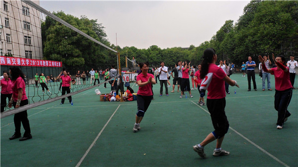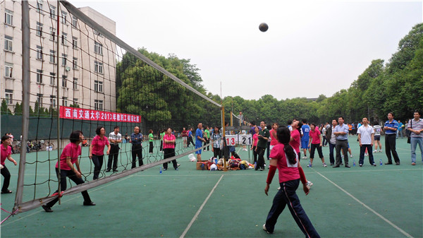 5月7日下午4点半,西南交通大学教职工排球赛女子赛在九里校区排球场敲响战鼓。Fun88乐天堂官网 与交运Fun88乐天堂 进行首场对决。Fun88乐天堂官网 何晓琼、陈玲、赵丽平、甘萍、王英、刘琼、王颖民、郭蕾等几位老师组队参加了比赛。