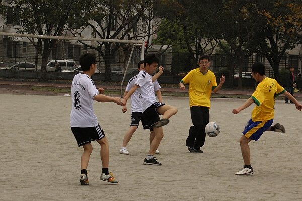 下半场,双方易地再战。开场不久,双方就将比赛推向了白热化,双方的你来我往,引起了场外观众的一片一片的叫好声。不久,4班球员抓住机会,全员压进,乘乱破门。8班球员全力反击,发动了多次极具威胁性的进攻,可惜未能破门。比赛进入补时时段,8班队员一路过关斩将,杀入禁区,可惜皮球被门柱弹出,最后8班以0:1憾负4班。