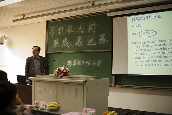畅谈会刚开始,主持人李芸对两位教授的个人履历作了简单的介绍,然后马磊教授率先发言。马磊教授通过几封推介信引出了他的发言主题——研究生应该具有国际视野。目前,无论是本科生还是研究生,都有很多有意向申请去国外留学,而推介信则是出国留学所不可或缺的。他特别强调推介信的描写应该客观公正,言之有物,避免主观的自吹自擂。在参与国际交往事务中要拥有恰当的行为态度即理性,平等,还要时刻保持危机感。