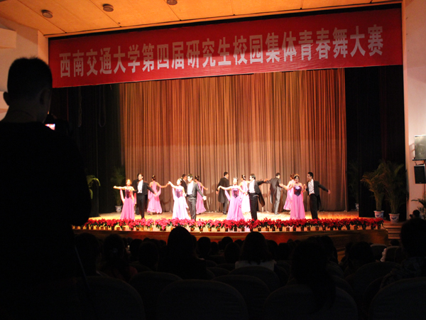 2012年11月1日14时,由学生处与体育部联合承办的西南交通大学第四届研究生校园集体青春舞大赛在我校九里校区大学生会堂拉开帷幕。来自各Fun88乐天堂 的16支队伍参与此次青春舞大赛。