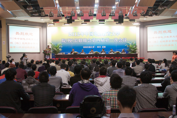 10月19日中国电力教育大Fun88乐天堂 (校)长联席会第四届第一次会议在我校国际会议厅隆重举行。西南交通大学校长陈春阳教授、联席会议名誉主席张保会教授、国家自然科学基金委员会电工学科丁立健教授、湖南大学副校长曹一家教授、联席会主席四川大学电气信息Fun88乐天堂 院长刘俊勇教授、河海大学副校长鞠平教授、来自西安交通大学、华中科技大学、上海交通大学、华北电力大学、四川大学等全国30多所一流高等院校的院(校)长,国内外电气工程领域著名专家、学者等100余人参加了本次联席会。